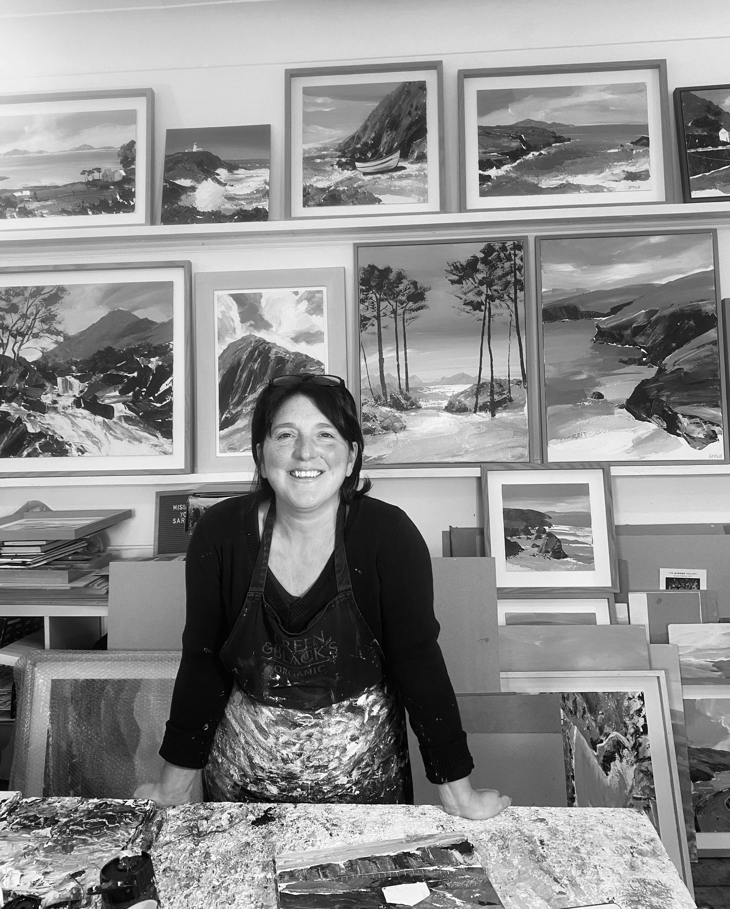 Much of her inspiration comes directly from the places where she loves to spend time - usually outdoors enjoying the coastline and mountains. Her work is often of the Welsh landscape and she also enjoys painting Scotland, Cornwall and Ireland.